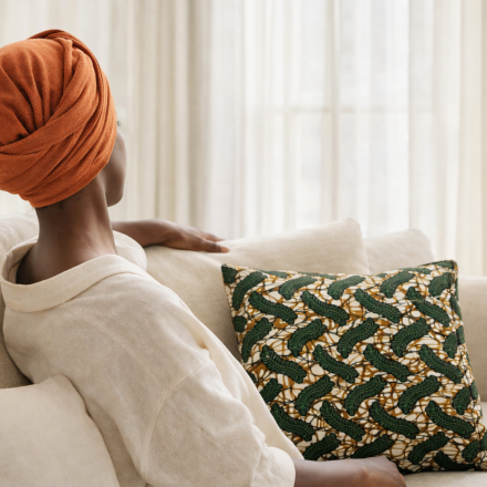 Black Jersey Head Wrap + Moyo Cushion Cover