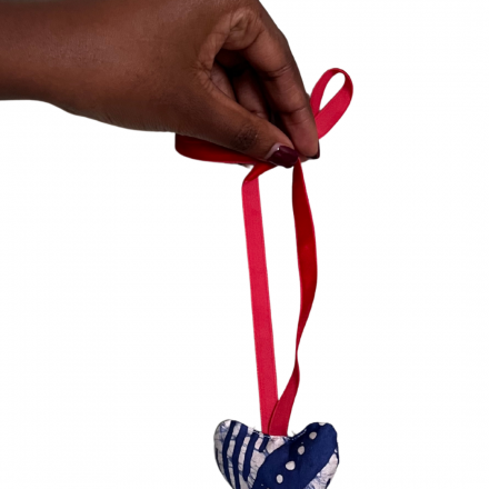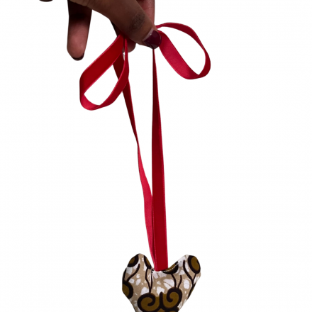Add warmth and handmade charm to the season with the Kito Tree Christmas Decoration. Crafted from African print scraps and finished with a soft velvet ribbon, this decoration brings beauty and intention to your Christmas tree or gift packages.