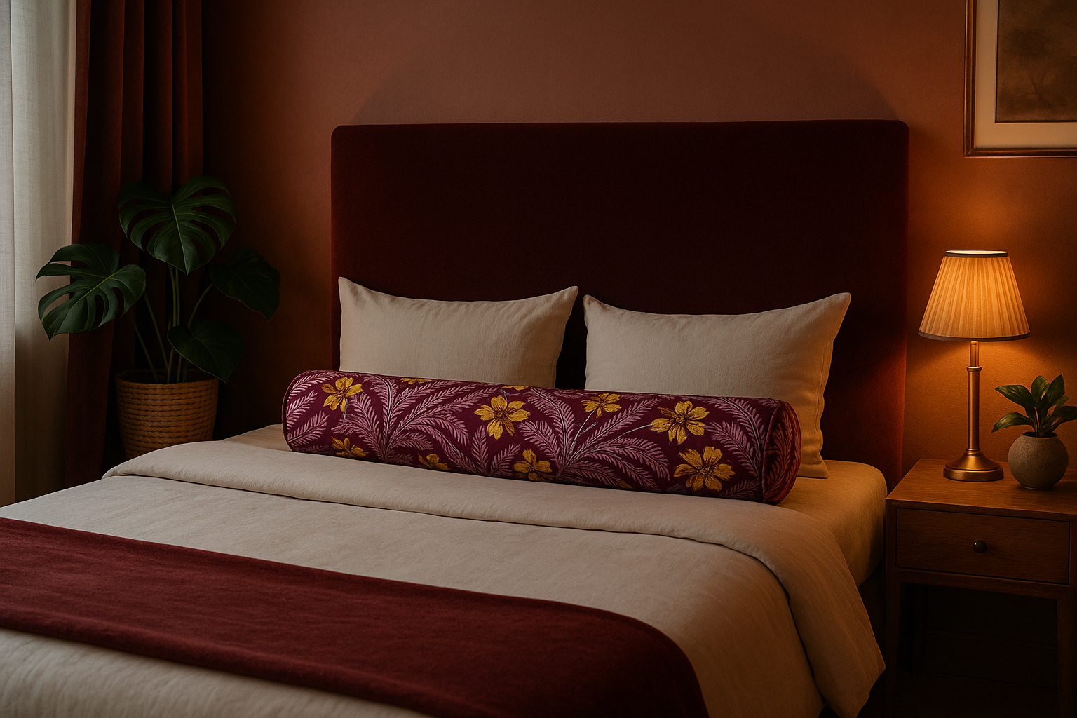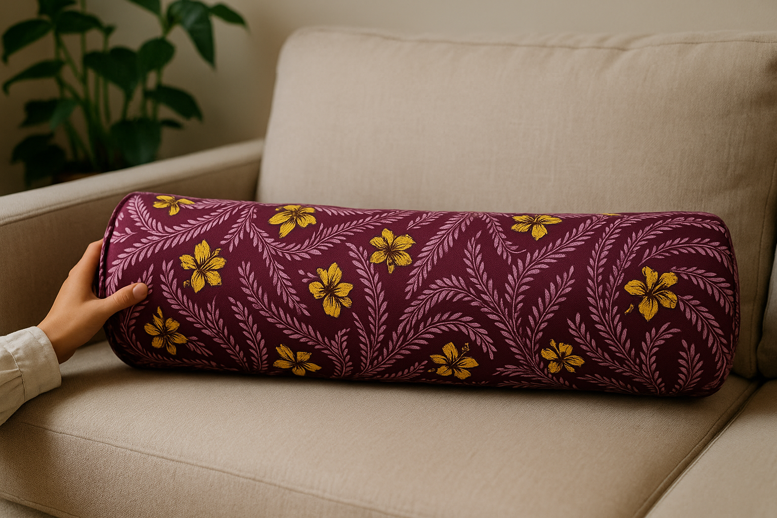 Our Maua bolster cushion is designed to be a statement piece, bringing character and warmth to any room. Handmade with care from authentic African wax print cotton, each cushion reflects a love for rich textures and cultural beauty.