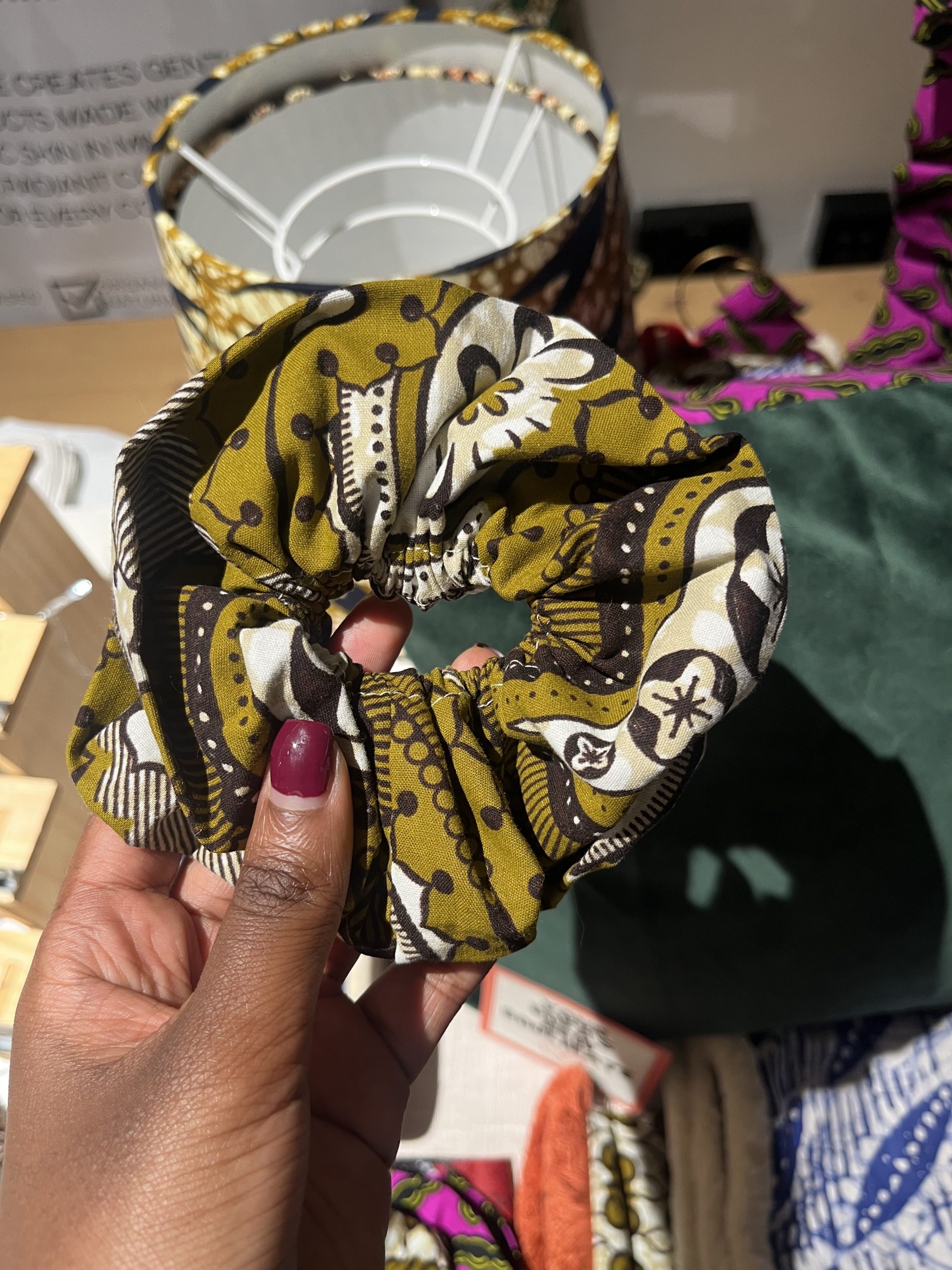 Grounded, warm and effortlessly timeless the Udongo Scrunchie is inspired by the richness of the earth and the beauty found in stillness. With its golden-olive and sand-toned print, it brings a touch of natural sophistication to your everyday style.